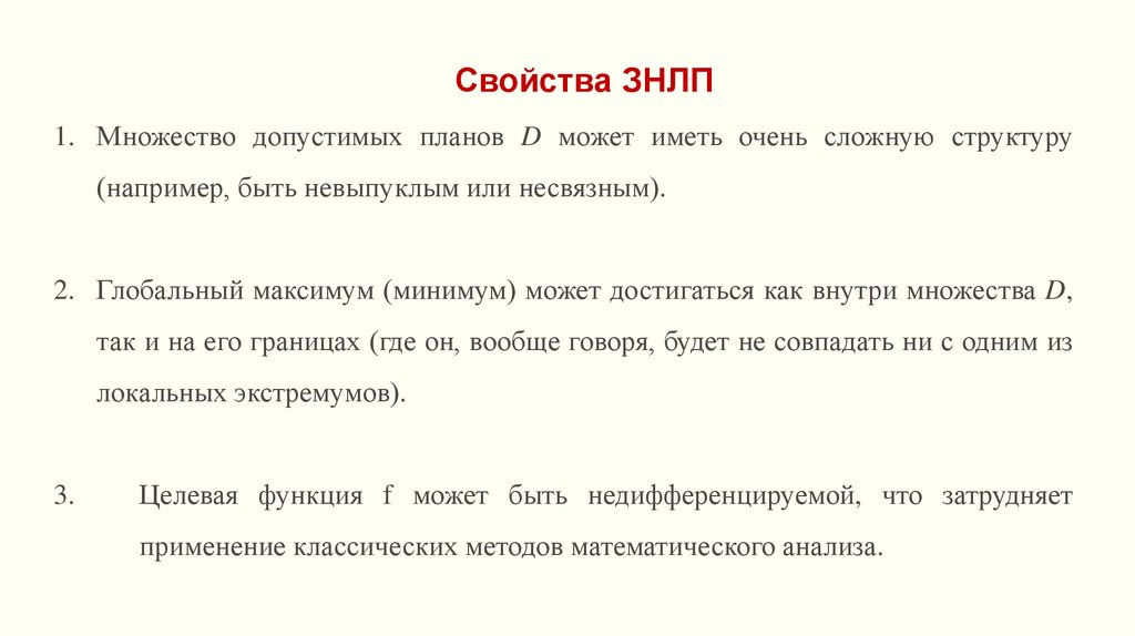 Свойства ЗНЛП1. Множество допустимых планов D может иметь очень сложную структуру