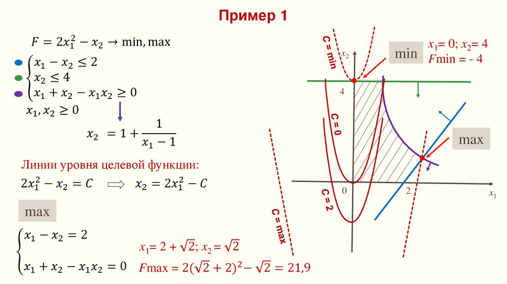 Находят точку ОДР, через которую проходит гиперповерхность наивысшего (наинизшего) уровня, и