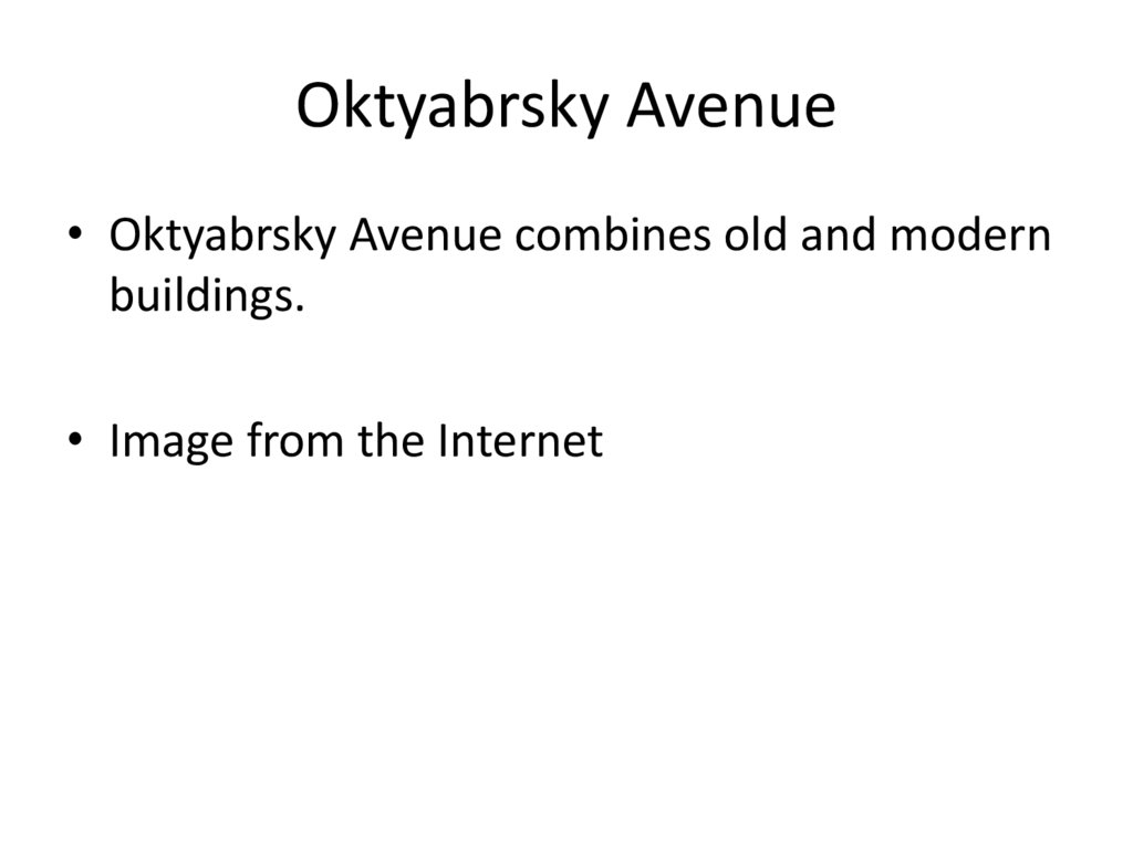 Oktyabrsky Avenue• Oktyabrsky Avenue combines old and modern
