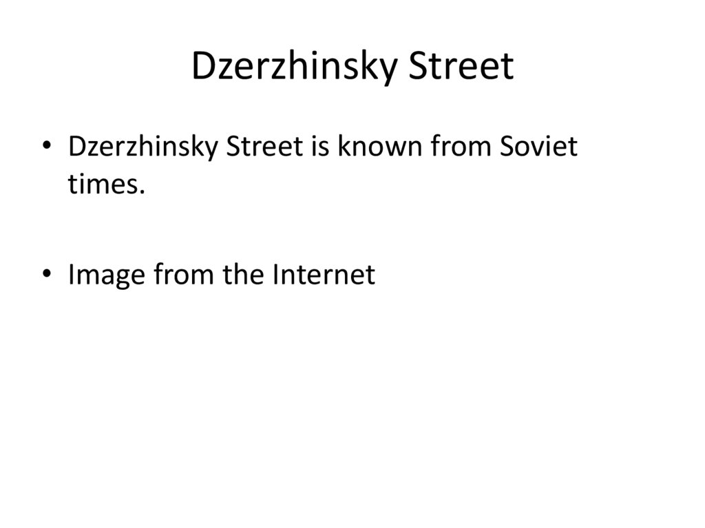 Dzerzhinsky Street• Dzerzhinsky Street is known from Soviet