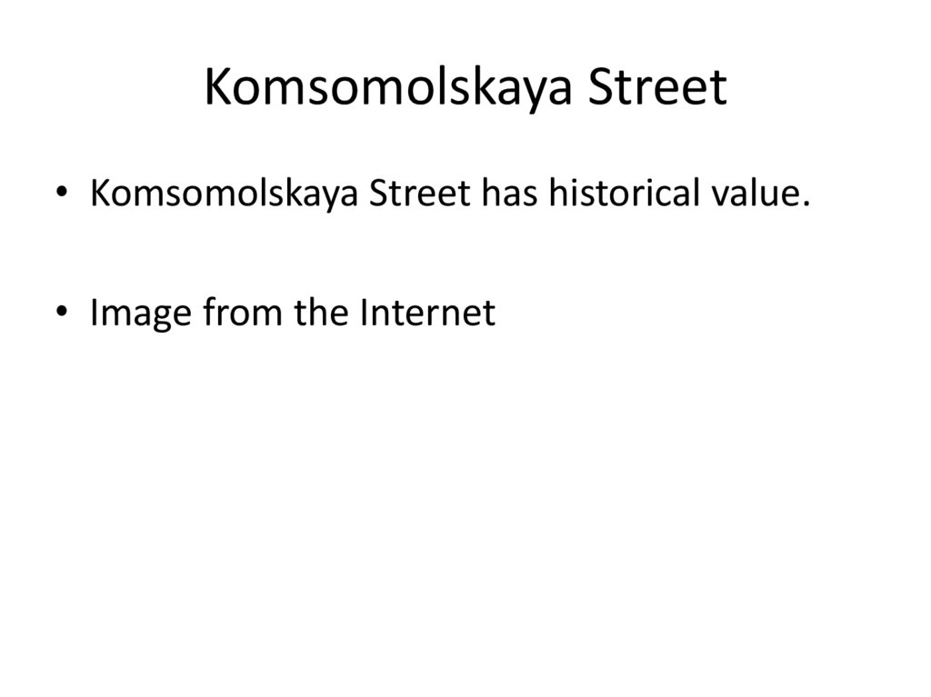 Komsomolskaya Street• Komsomolskaya Street has historical value.
