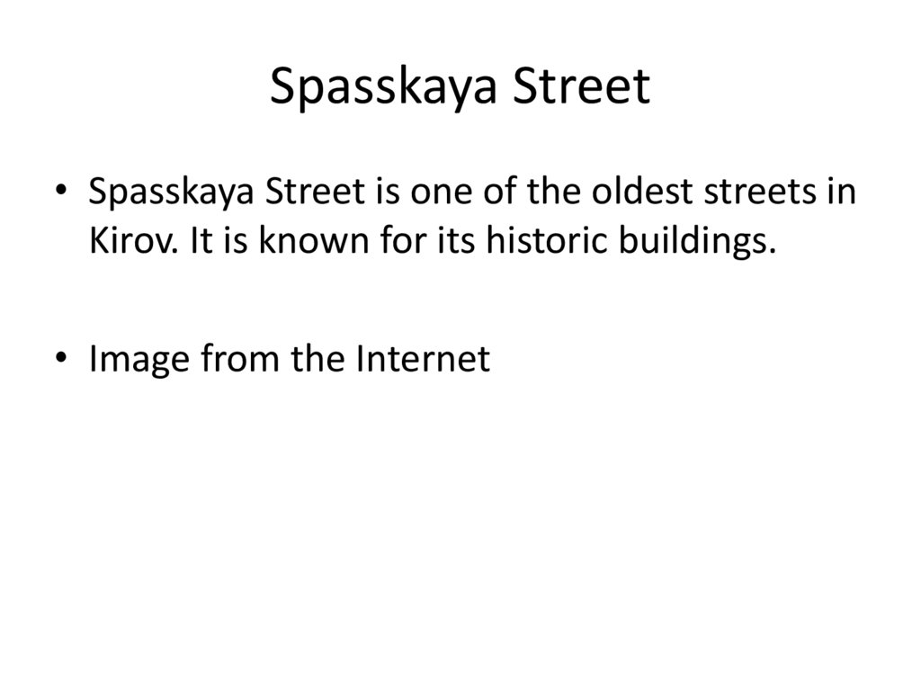 Spasskaya Street• Spasskaya Street is one of the oldest streets in
