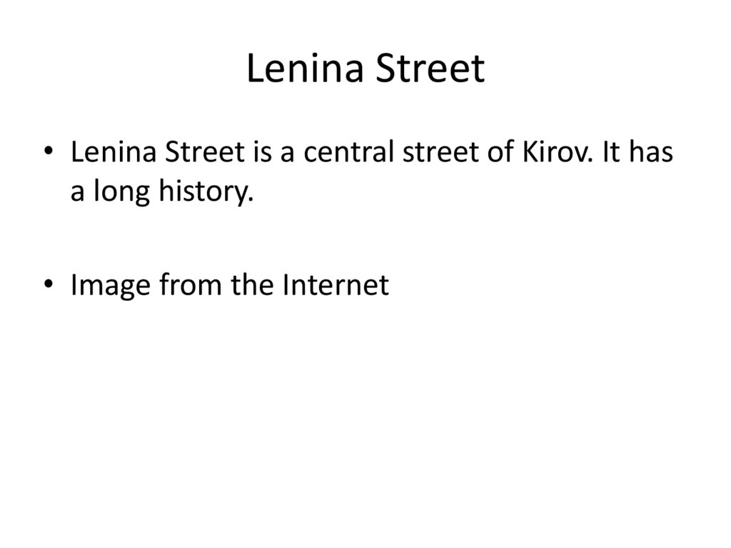 Lenina Street• Lenina Street is a central street of Kirov. It has