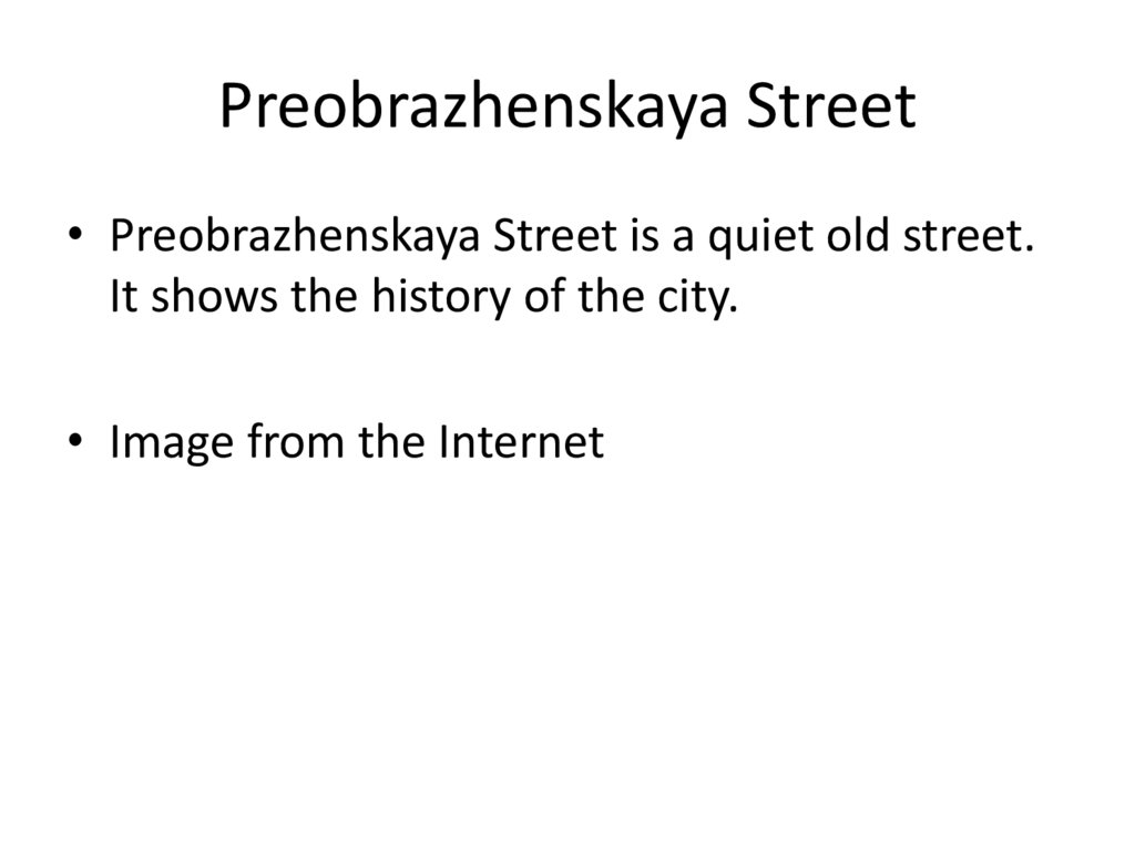 Preobrazhenskaya Street• Preobrazhenskaya Street is a quiet old street.