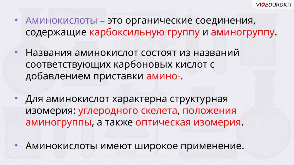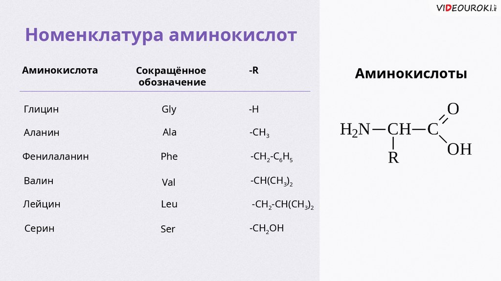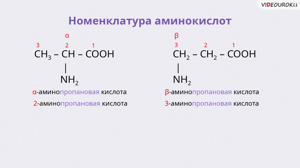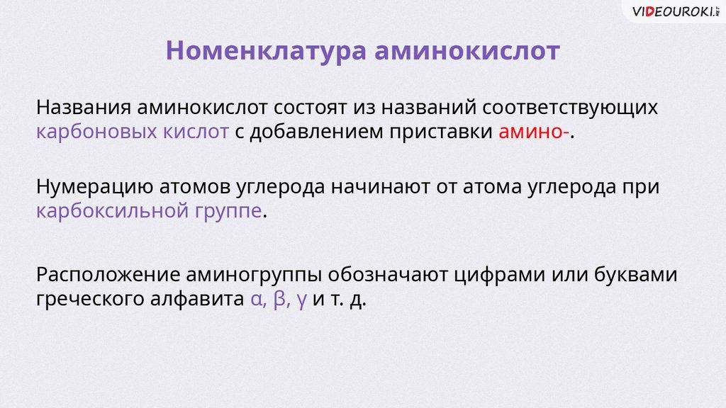 Номенклатура аминокислотНазвания аминокислот состоят из названий соответствующих