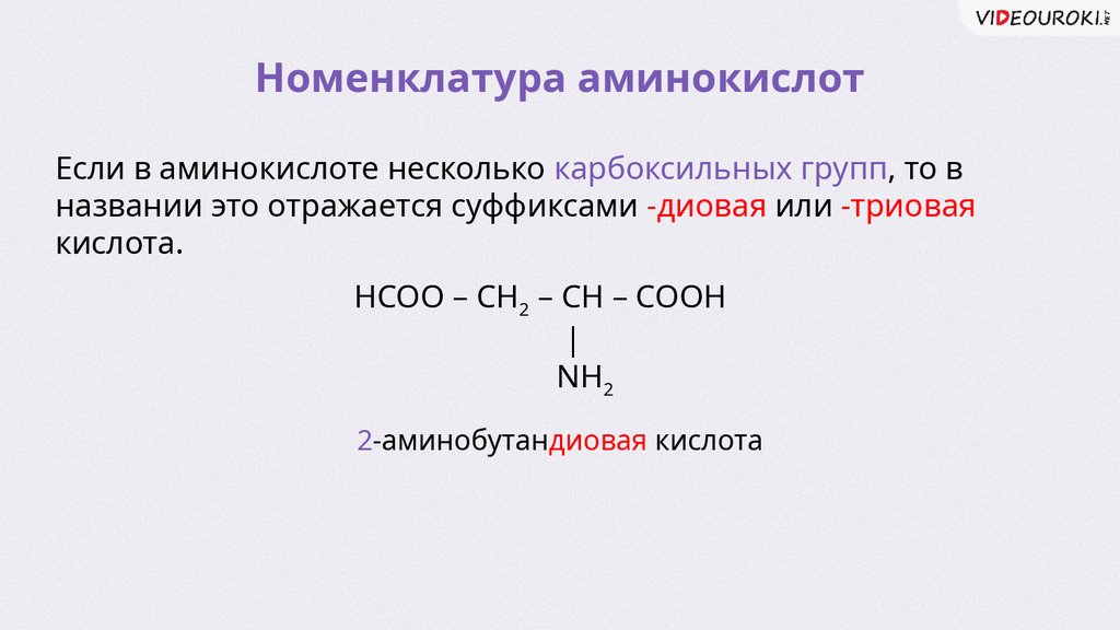 Номенклатура аминокислотЕсли в аминокислоте несколько карбоксильных групп, то в