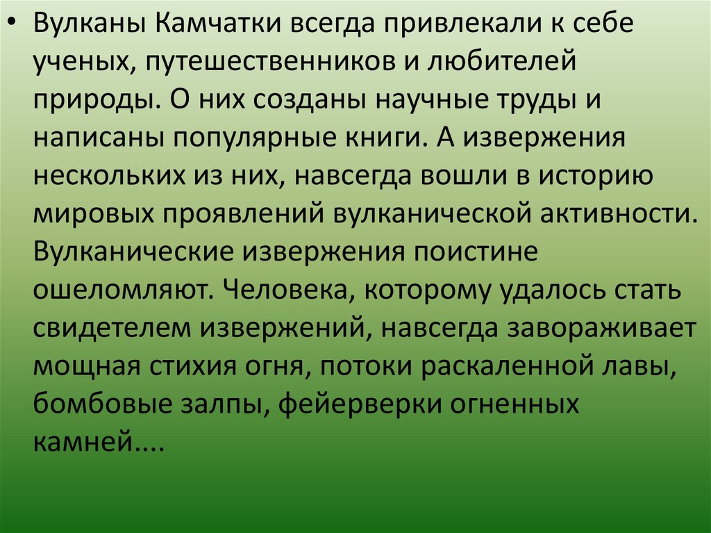 • Вулканы Камчатки всегда привлекали к себеученых, путешественников и любителей