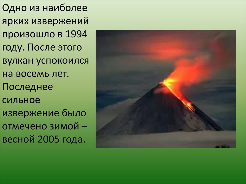 • На Земле около 600 действующих вулканов, 29из них находятся на Камчатке, 3-4 из которых