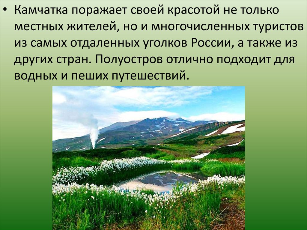 • Камчатка поражает своей красотой не толькоместных жителей, но и многочисленных туристов