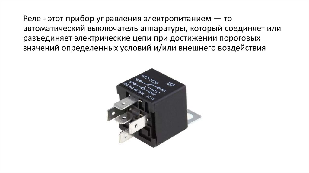 Реле - этот прибор управления электропитанием — тоавтоматический выключатель аппаратуры, который соединяет или
