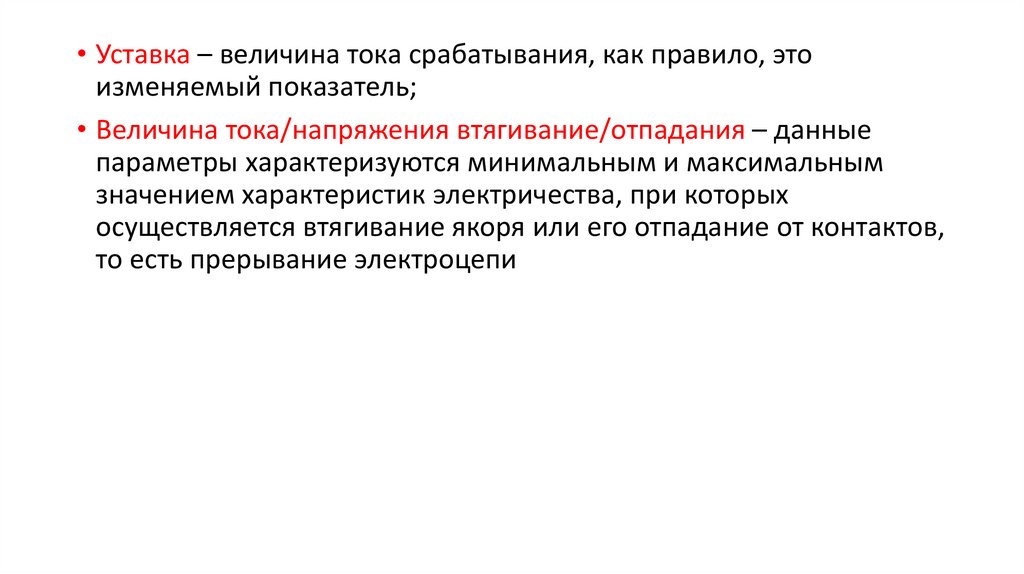 • Уставка – величина тока срабатывания, как правило, этоизменяемый показатель;