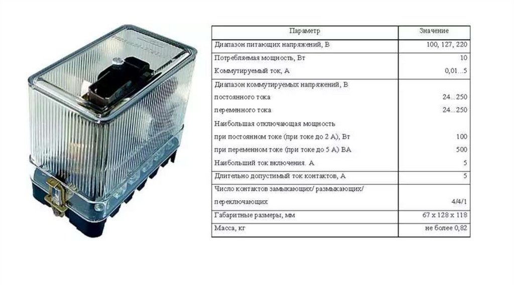 11. Основные технические характеристики реле