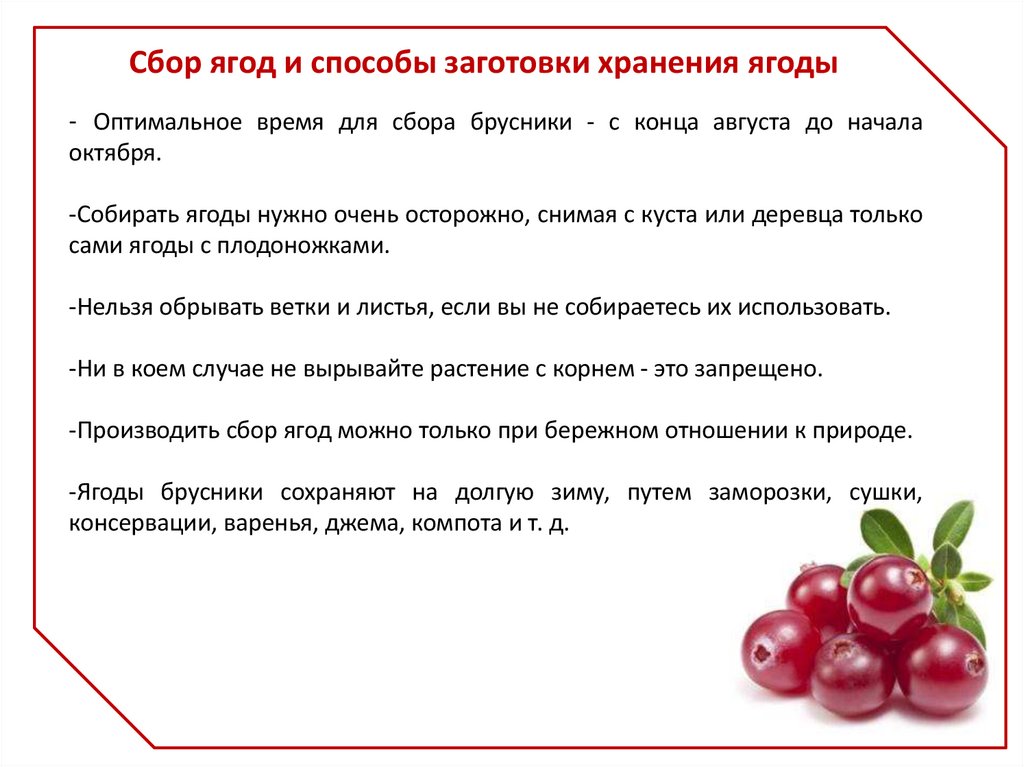 Сбор ягод и способы заготовки хранения ягоды- Оптимальное время для сбора брусники - с конца августа до начала