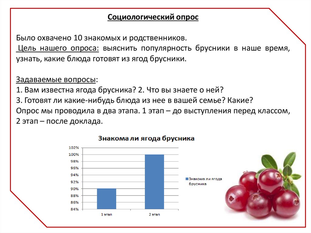 Цель нашего опроса: выяснить популярность брусники в наше время,