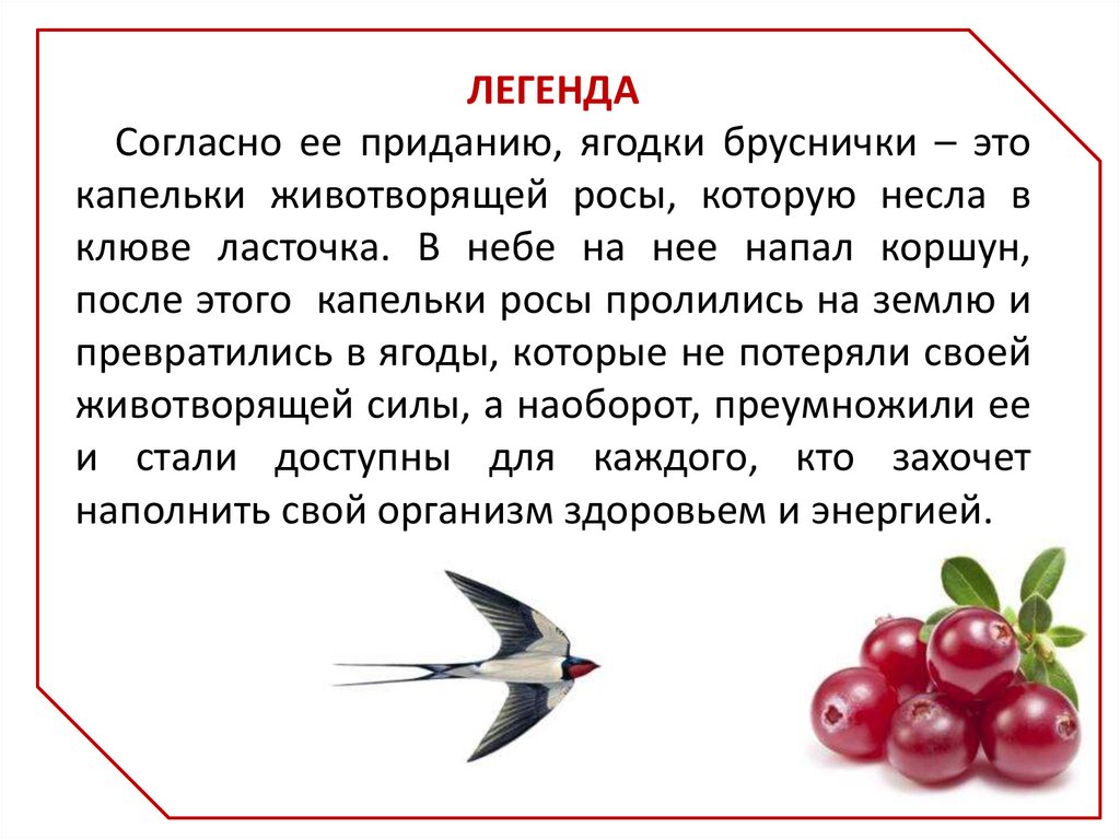 ЛЕГЕНДАСогласно ее приданию, ягодки бруснички – это