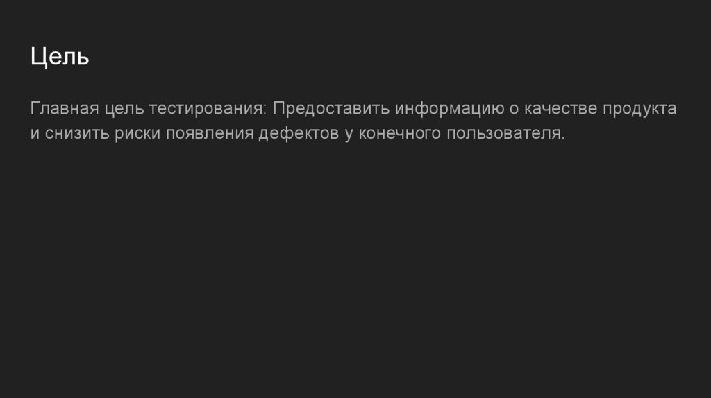 ЦельГлавная цель тестирования: Предоставить информацию о качестве продукта