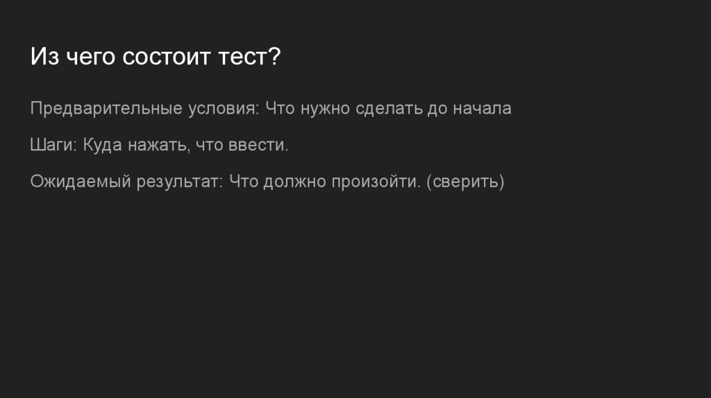Из чего состоит тест?Предварительные условия: Что нужно сделать до начала