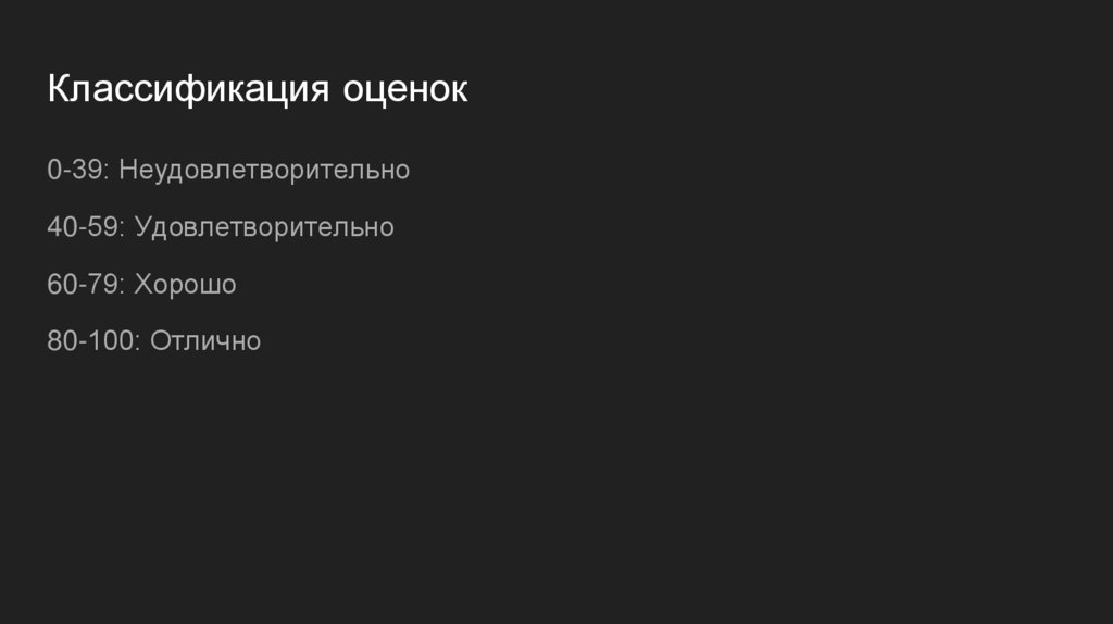 Классификация оценок0-39: Неудовлетворительно