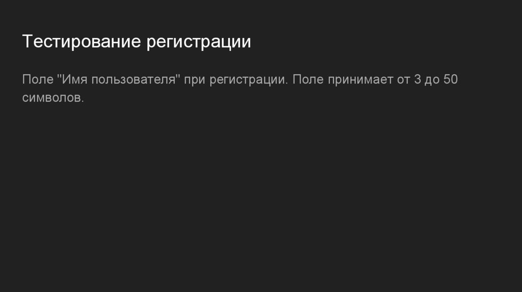 Тестирование регистрацииПоле "Имя пользователя" при регистрации. Поле принимает от 3 до 50