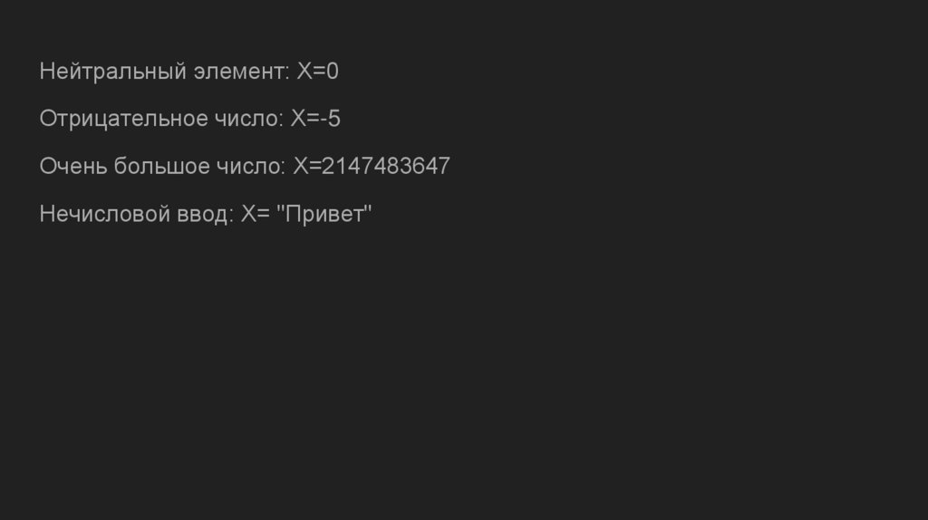 Нейтральный элемент: X=0Отрицательное число: X=-5