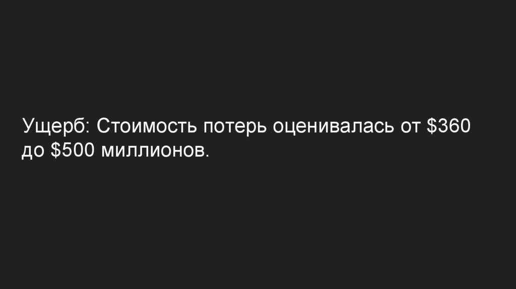 Ущерб: Стоимость потерь оценивалась от $360до $500 миллионов.
