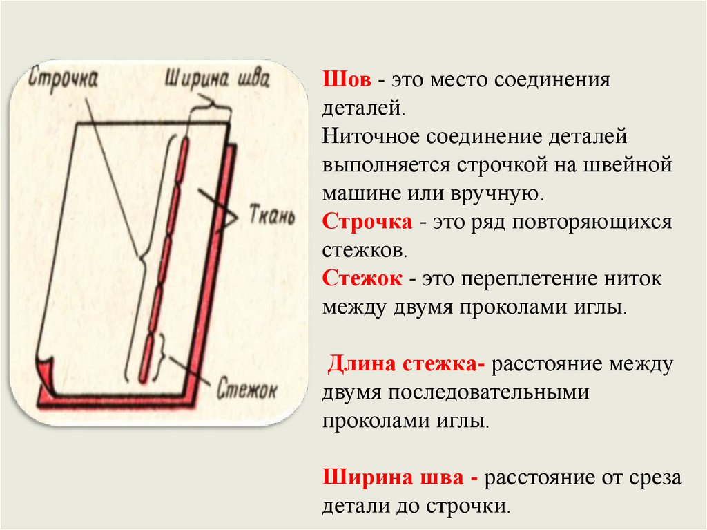 шва левая рука должна лежать на ткани, прижав пальцами ткань к столу.