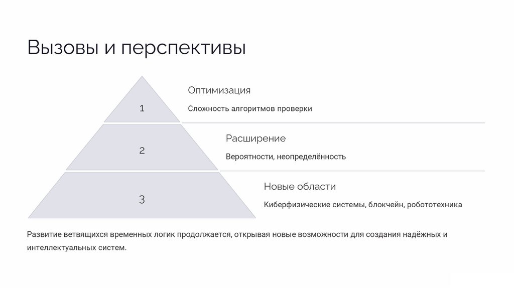 Развитие ветвящихся временных логик продолжается, открывая новые возможности для создания надёжных и