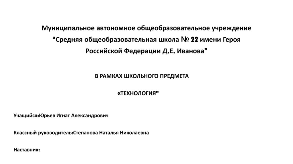 Муниципальное автономное общеобразовательное учреждение“Средняя общеобразовательная школа № 22 имени Героя