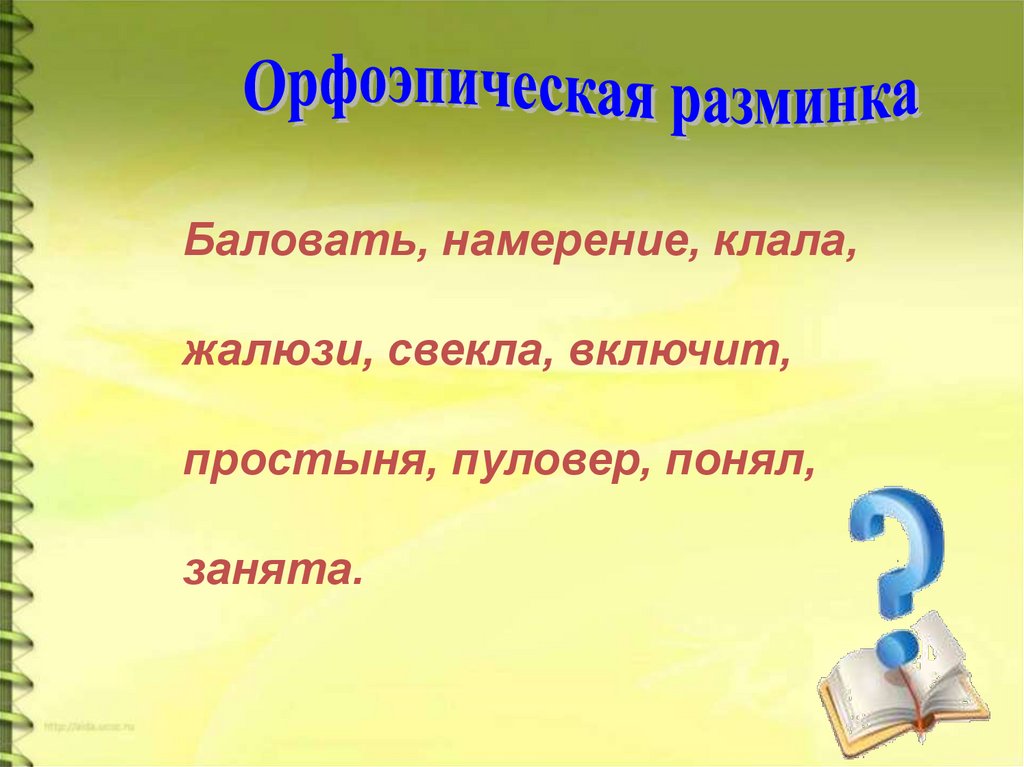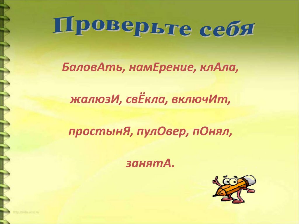 БаловАть, намЕрение, клАла,жалюзИ, свЁкла, включИт,