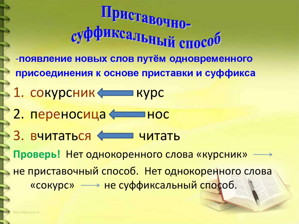 -появление новых слов путём одновременногоприсоединения к основе приставки и суффикса