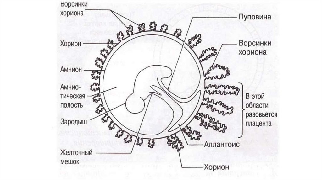 • Хорион — наружная зародышевая оболочка, препятствует чрезмерной потере воды