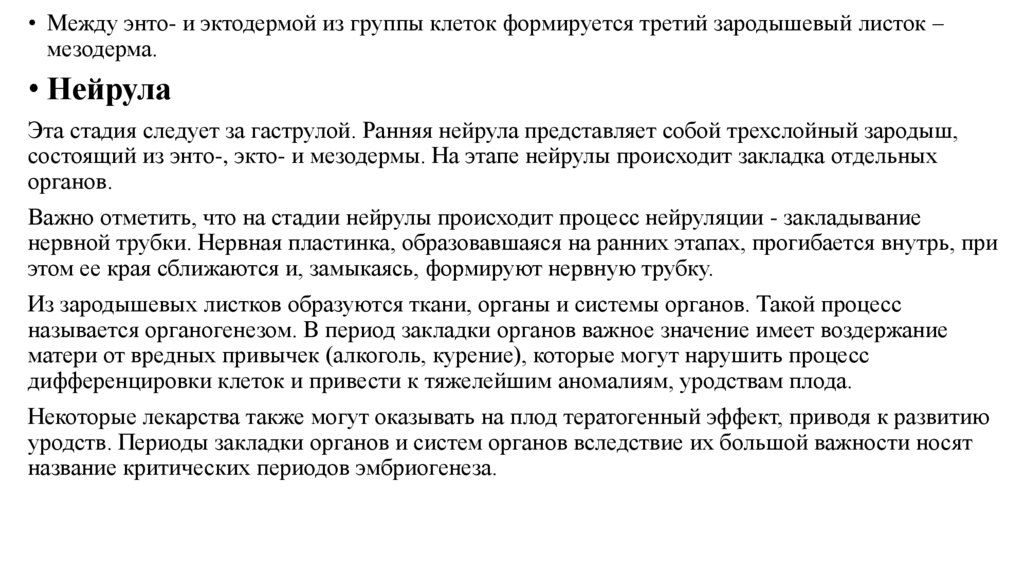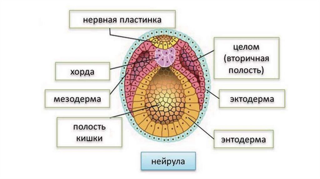 состоящий из энто-, экто- и мезодермы. На этапе нейрулы происходит закладка отдельных