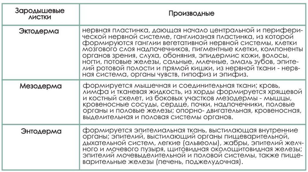 Из зародышевых листков образуются ткани, органы и системы органов. Такой процесс
