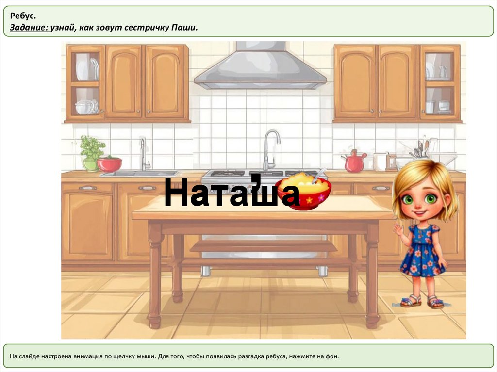 Ребус.Задание: узнай, как зовут сестричку Паши.