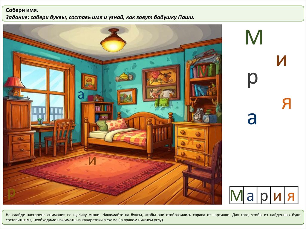 Собери имя.Задание: собери буквы, составь имя и узнай, как зовут дедушку Паши.