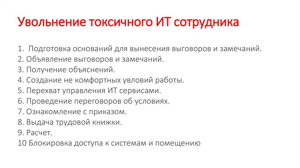 Увольнение токсичного ИТ сотрудника1. Подготовка оснований для вынесения выговоров и замечаний.