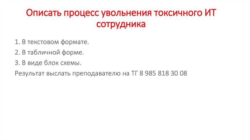 Результат выслать преподавателю на ТГ 8 985 818 30 08
