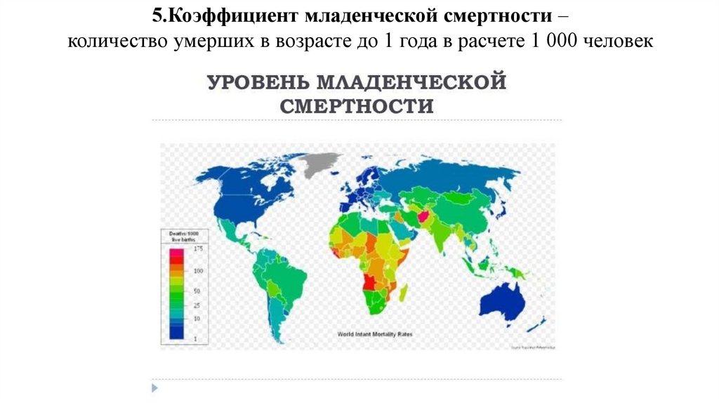5.Коэффициент младенческой смертности –количество умерших в возрасте до 1 года в расчете 1 000 человек