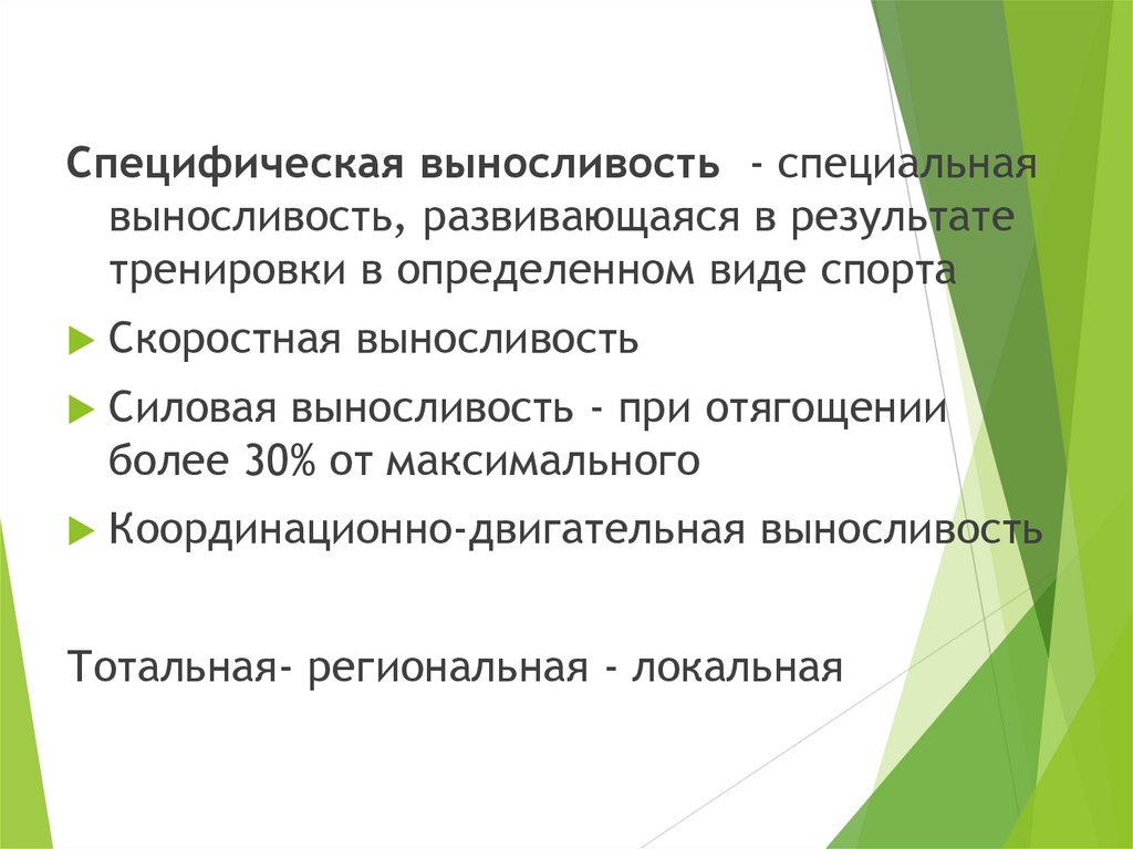 Специфическая выносливость - специальнаявыносливость, развивающаяся в результате