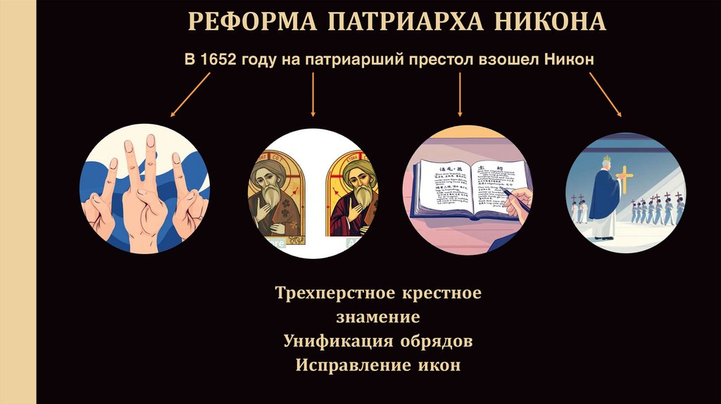 РЕФОРМА ПАТРИАРХА НИКОНАВ 1652 году на патриарший престол взошел Никон