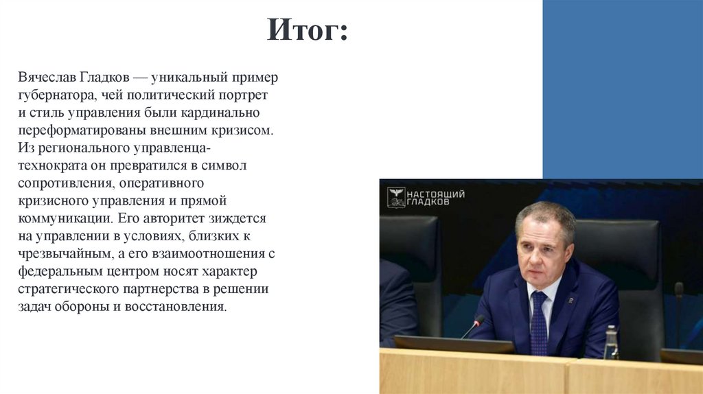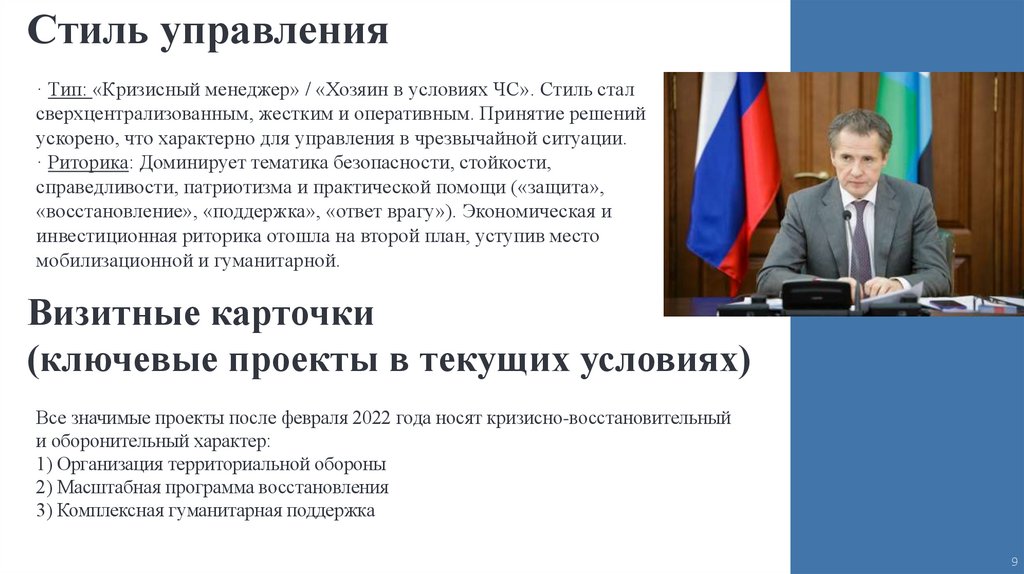 управленца» и «губернатора прифронтовой зоны». Акцент на оперативном