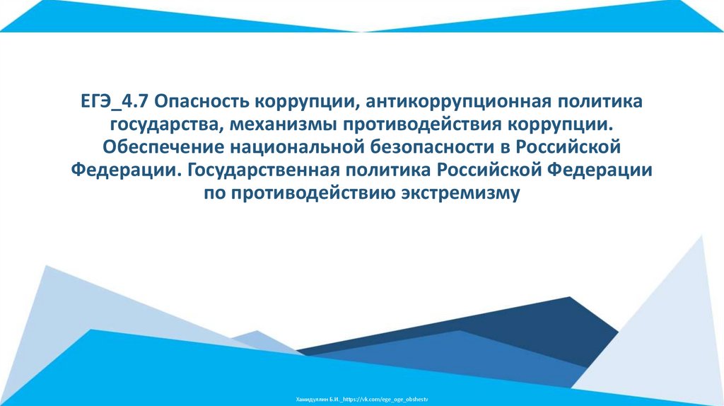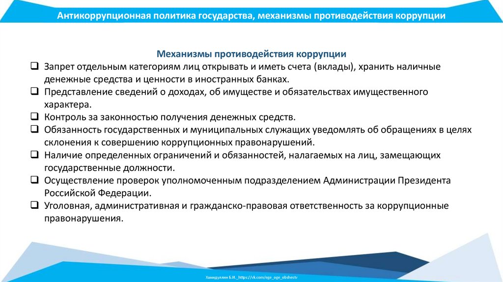 1. ЕГЭ_4.7 Опасность коррупции, антикоррупционная политика государства, механизмы противодействия коррупции. Обеспечение