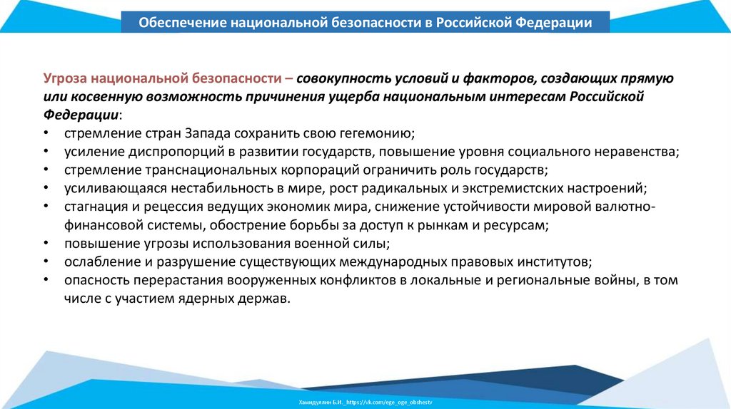 национальной безопасности в РоссийскойФедерации. Государственная политика Российской Федерации