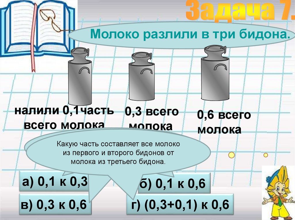 Молоко разлили в три бидона.налили 0,1часть 0,3 всего