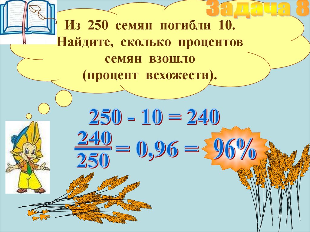 Из 250 семян погибли 10.Найдите, сколько процентов