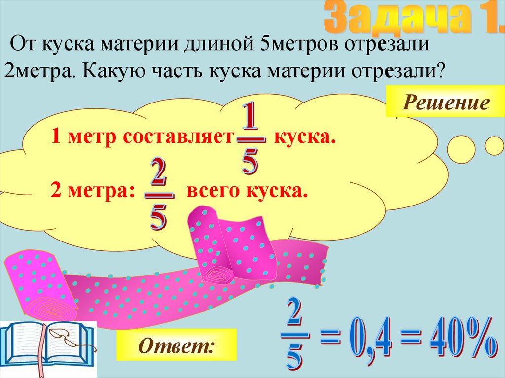 От куска материи длиной 5метров отрезали2метра. Какую часть куска материи отрезали?