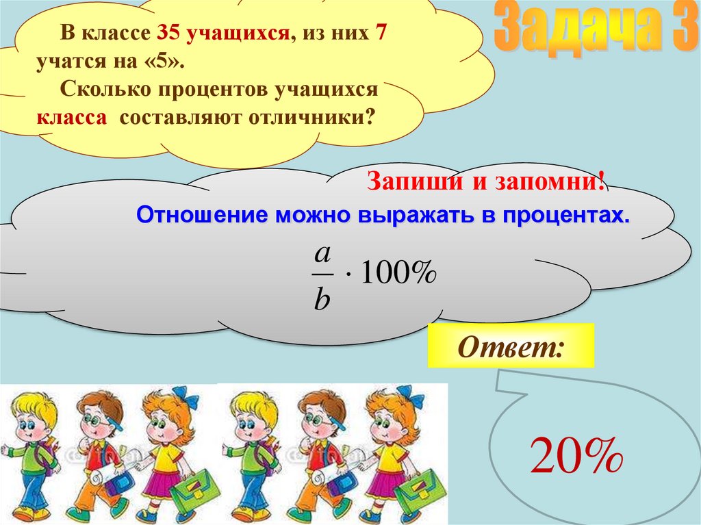 В классе 35 учащихся, из них 7учатся на «5».