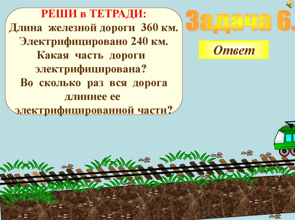 РЕШИ в ТЕТРАДИ:Длина железной дороги 360 км.