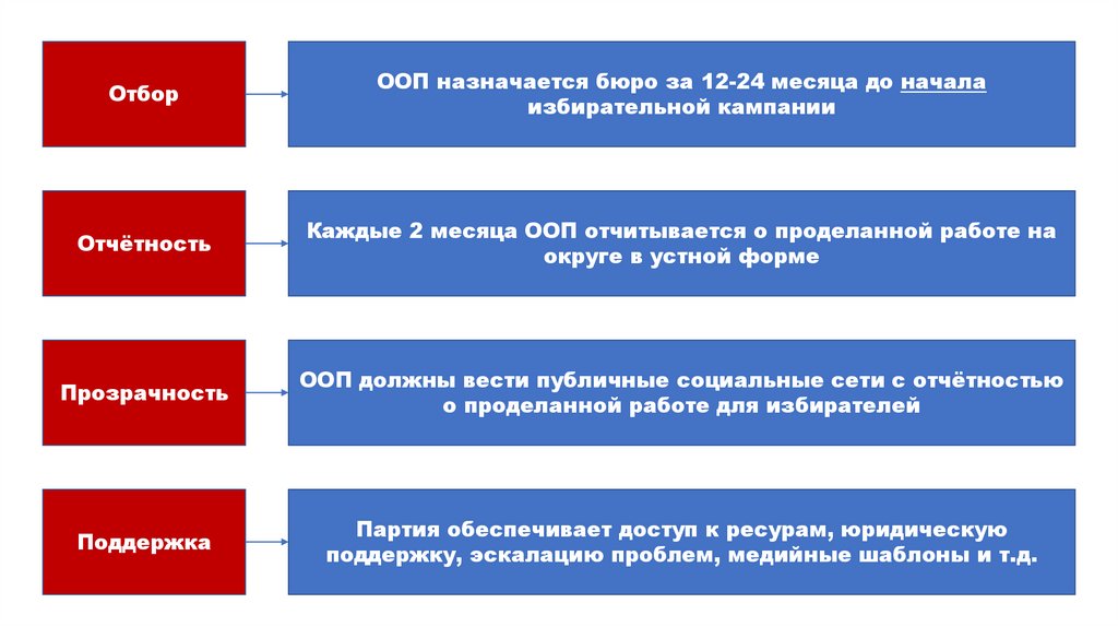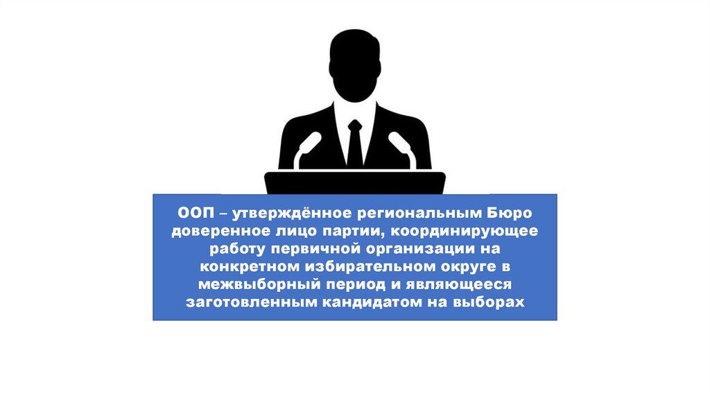 ООП – утверждённое региональным Бюродоверенное лицо партии, координирующее