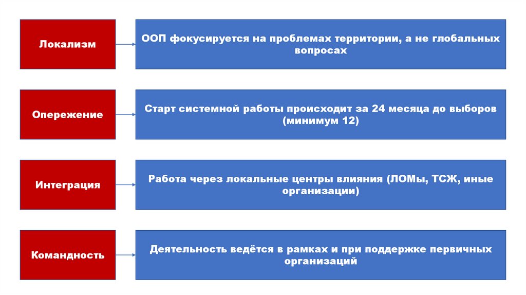 ЛокализмООП фокусируется на проблемах территории, а не глобальных